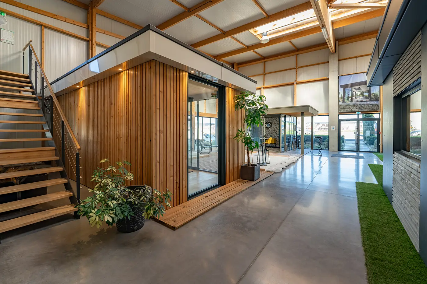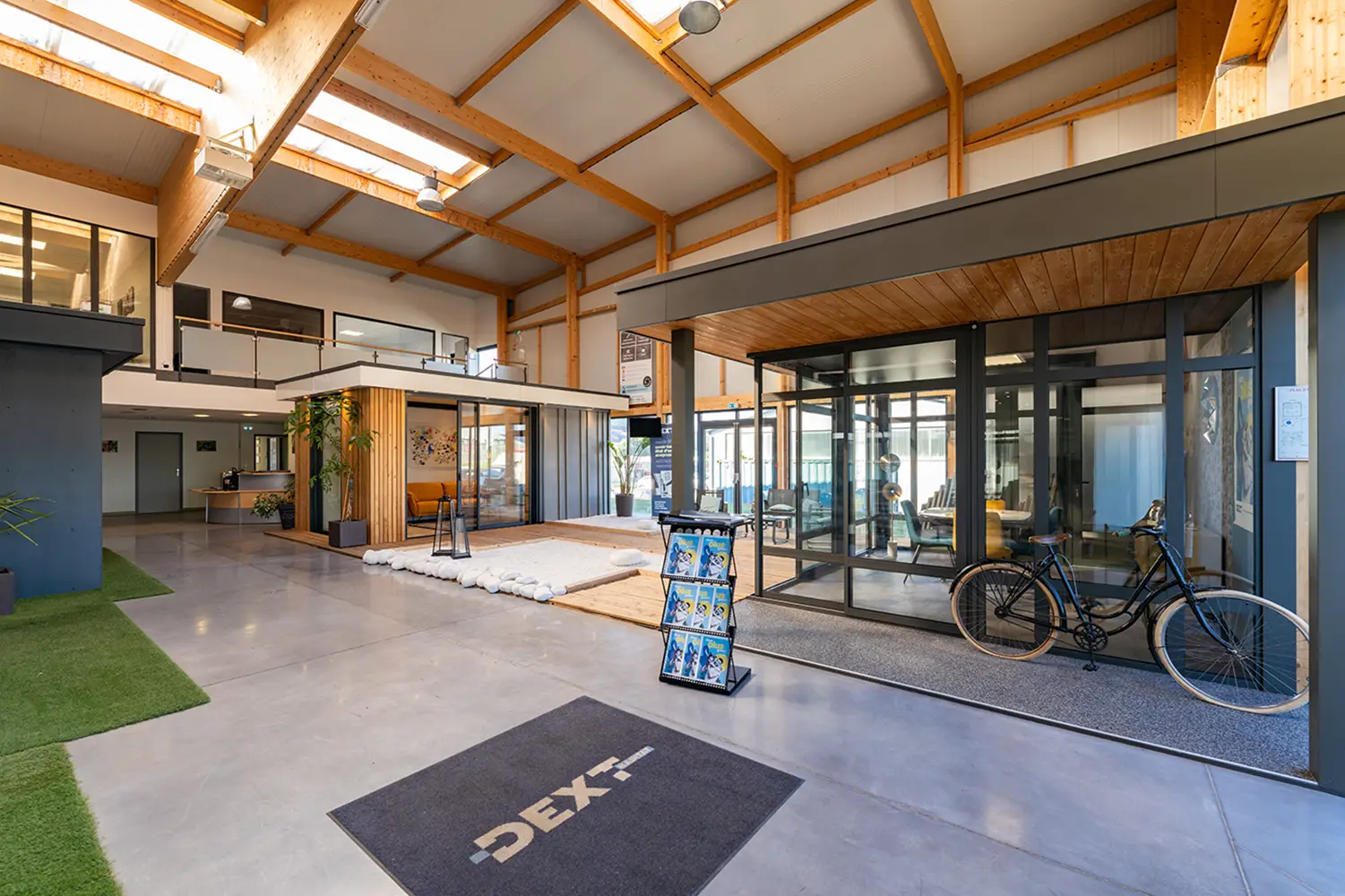 Le projet du bâtiment DEXT HABITAT s’est fait dans plusieurs temporalités : le bâtiment initial a été édifié en 2015 ; puis l’unité de production a été largement doublée en 2022.